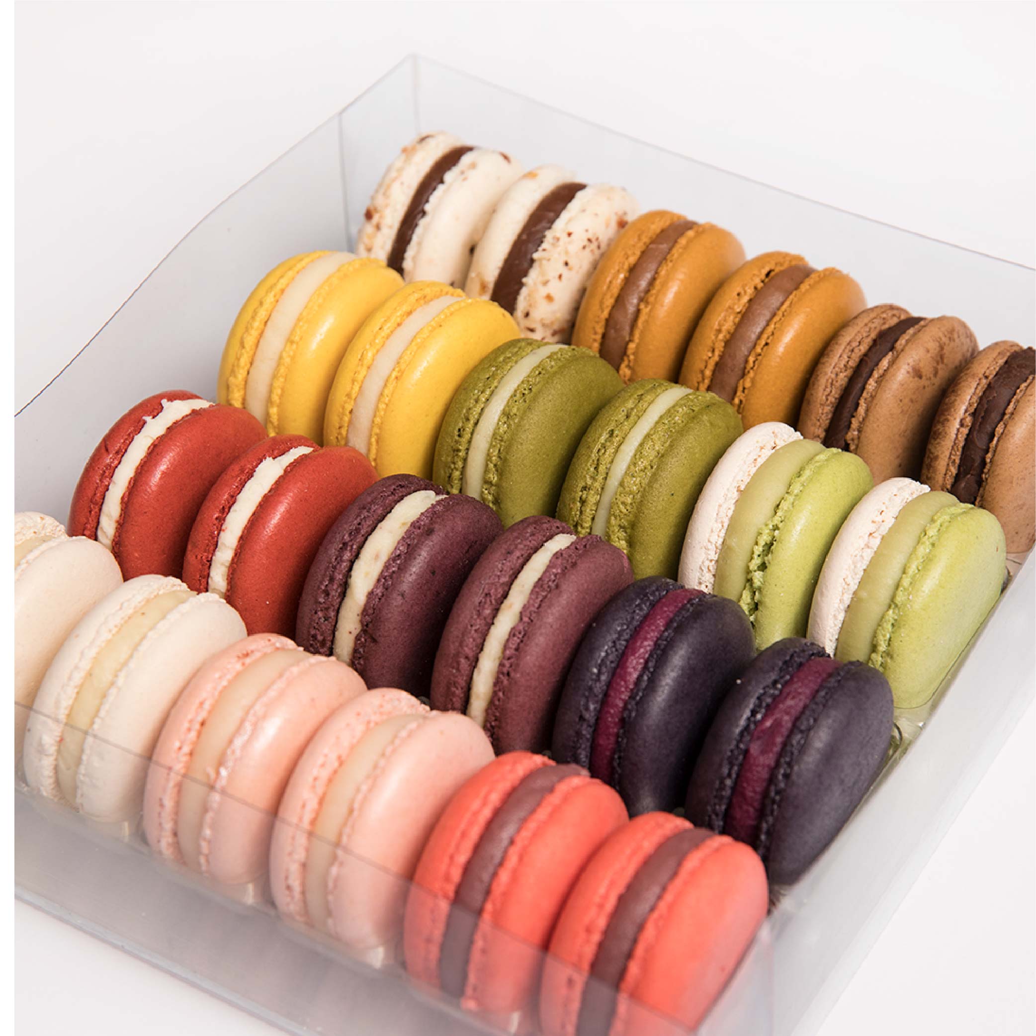¡No te quedes con el antojo! Caja de 24 macarons surtidos con todos nuestros sabores de línea.