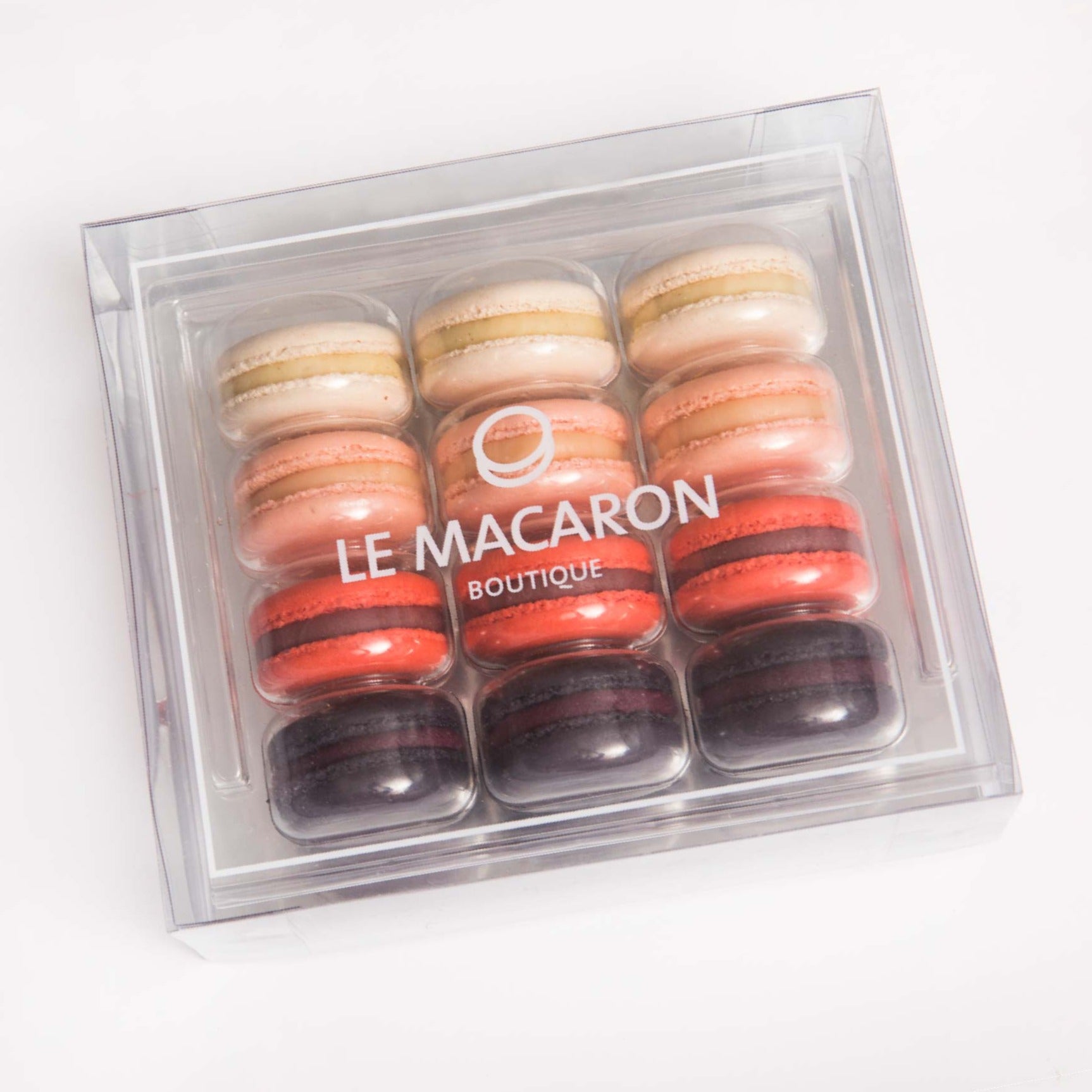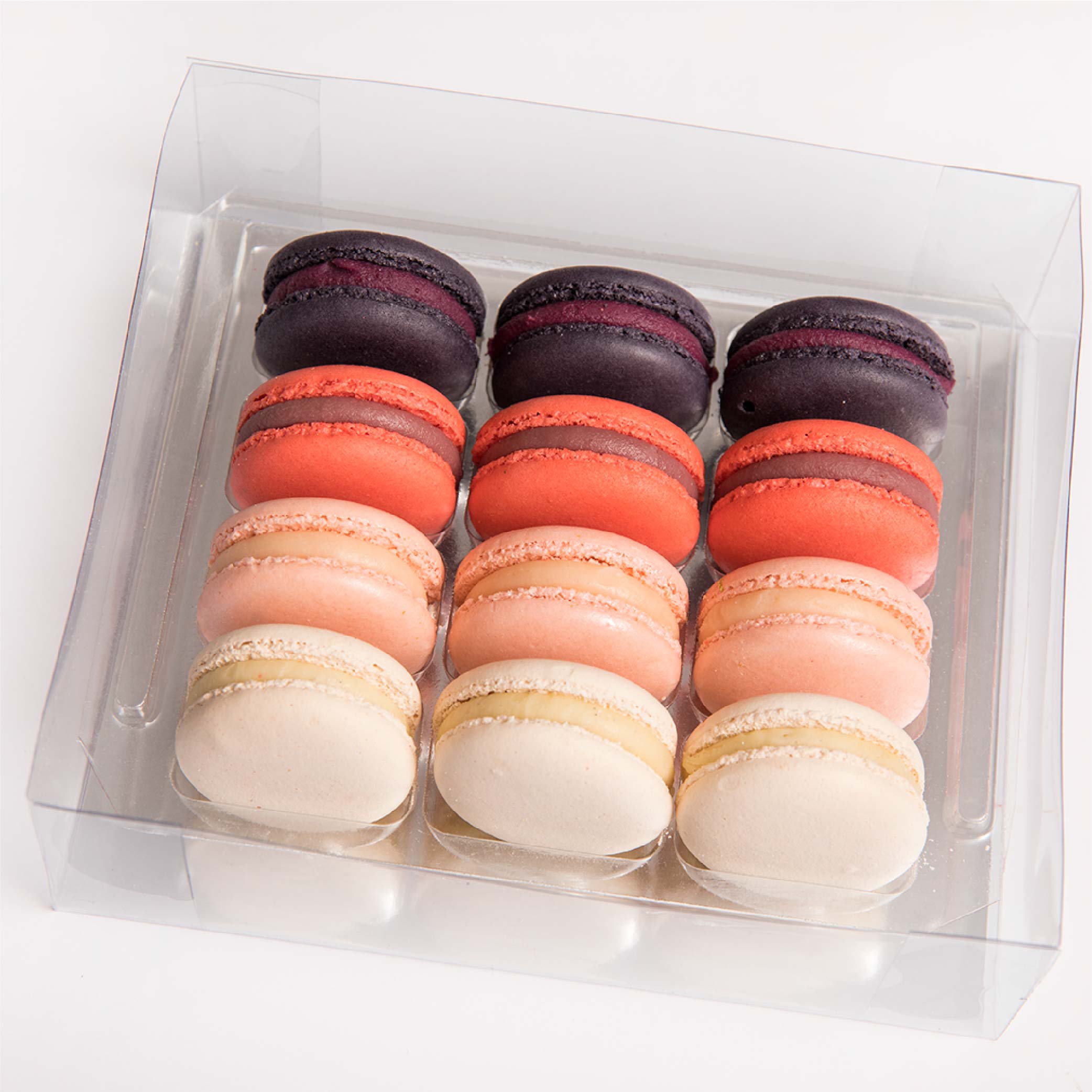 ¡IT´S A GIRL! Caja de 12 macarons sabor vainilla, pétalos de rosa y frambuesa.